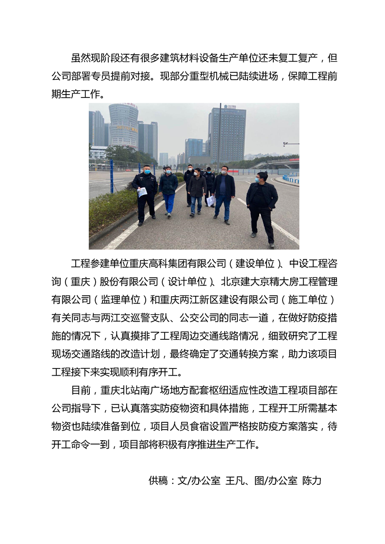兩江建設公司兩個重點施工項目開(復)工 準備全面完成