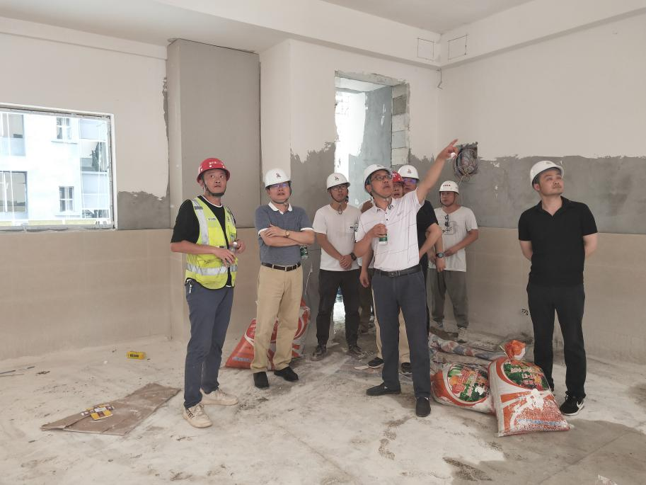 盧董到達工地后,著重了解項目現場安全、進度相關問題,盧董強調,現場要保障能順利完成工期的同時,也要確,F場不發生安全事故,安全是重中之重。同時對質量問題進行了全面檢查,觀察了室內水磨石地面等,并一再要求施工單位保質保量的完成。