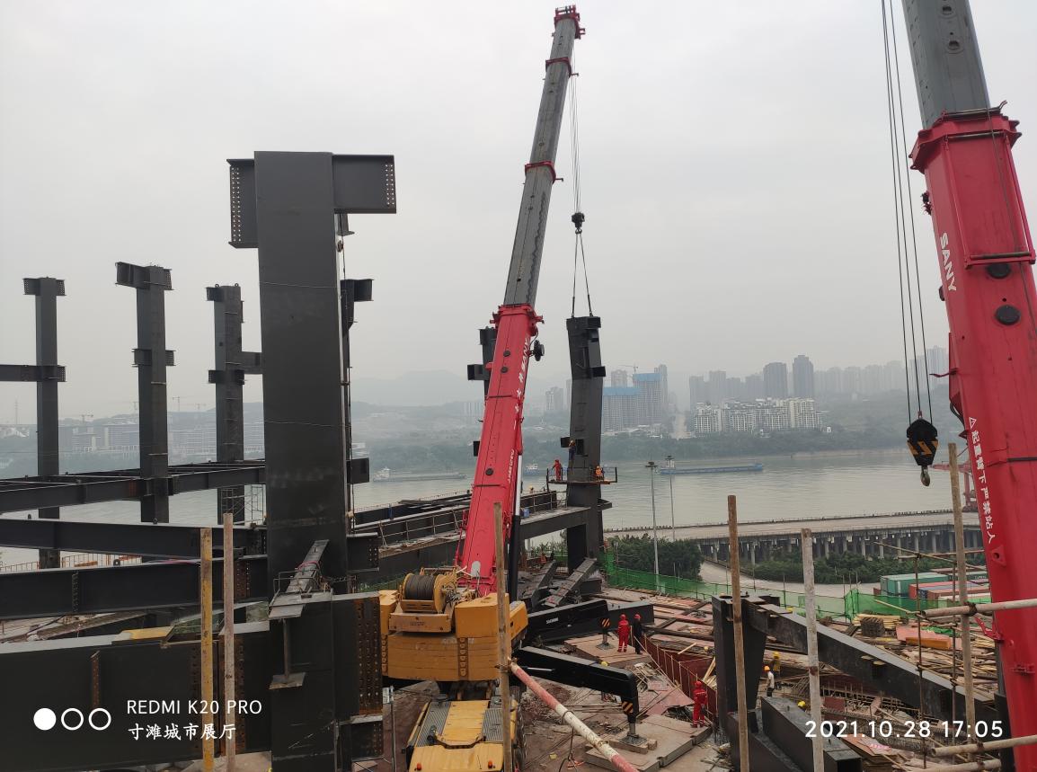 來源:文/總工辦 林彬 圖/總工辦 李書琦 發(fā)布日期:2021/10/29 【打印此文】10月28日下午,由兩江建設(shè)公司承建的重慶寸灘國際新城展示中心項目采用600噸吊車吊裝60噸重量的鋼柱一次性成功,開創(chuàng)了公司大型超重異形鋼結(jié)構(gòu)柱吊裝施工工藝的又一創(chuàng)新實用新型技術(shù)。