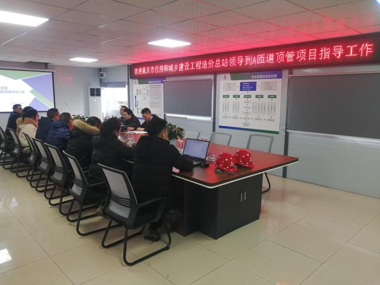 項目部就工程概況、設備參數及頂推工藝做了具體介紹;各參建方就現場定額編制及其它計價問題進行現場答疑。專家組表示目前在重慶市大管徑頂管相關定額缺項,考慮到矩形頂管項目的市場發展需要,合理確定和有效控制矩形頂管項目成本,建議補充定額編制工作與項目施工同時推進;過程中做好影像資料收集和相關簽證工作。由于補充定額編制是一個長期的過程,定額需要大量的數據采集才能保證可靠性和科學性。兩江建設公司與市造價總站市政專業專家就本項目建立了常態化現場指導模式,為本項目一次性補充定額的編制工作夯實了基礎。