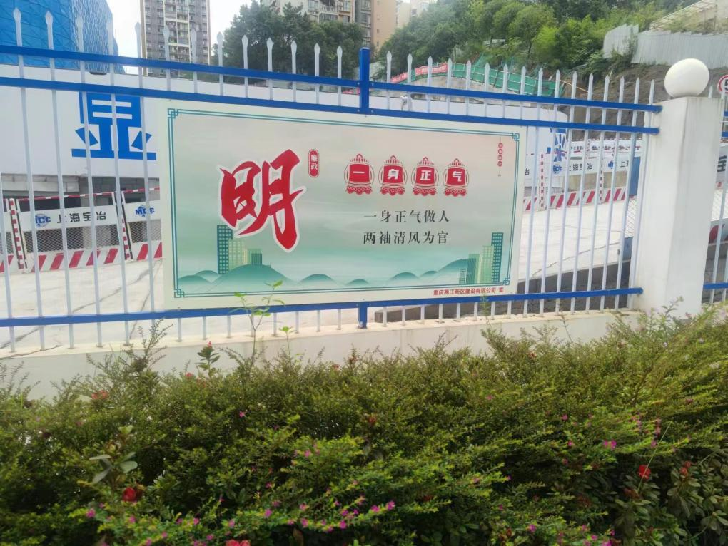 今年7月,兩江建設公司根據上級文件精神,并結合公司、項目部實際情況,在江北嘴集團紀委的指導下,制定了《<爭創廉潔示范工地,增強工程建設管理實力--以兩江建設公司O38-1-1地塊中學工程代建項目廉潔風險防范體系為切入點,助推集團穩步推進清廉國企建設和高質量發展>工作實施方案》。繪好“藍圖”后,公司領導、相關部門多次赴項目部指導工作,項目部按照方案扎實開展各項工作,積極穩步推進清廉示范工地的創建工作,并總結出廉潔示范工地成果——“1+4+4”清廉示范工地管理體系。