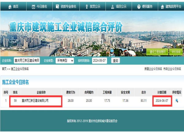 兩江建設(shè)公司邁進(jìn)全市建筑施工企業(yè)誠信綜合評價前100名行列